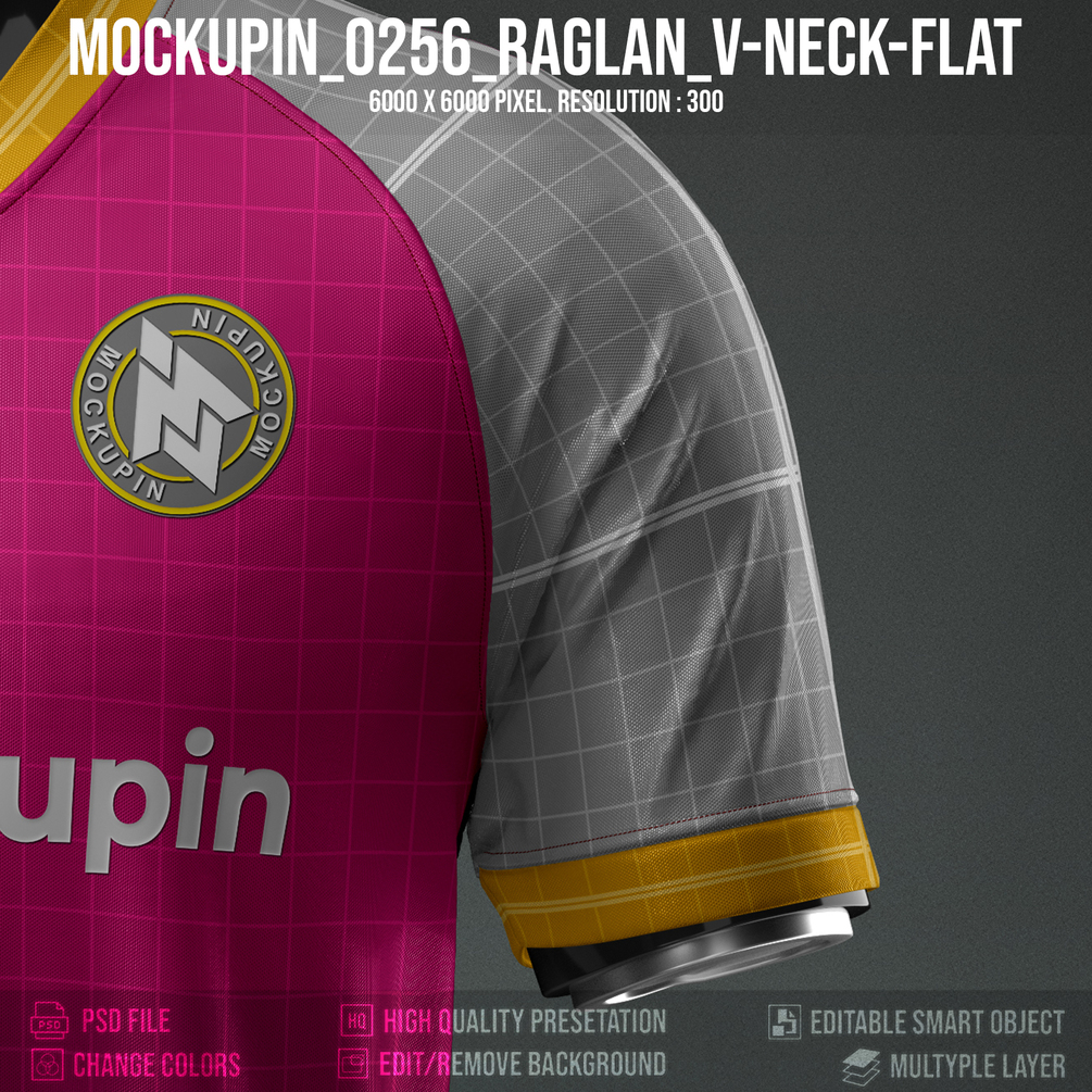 Be the first to review “0256 Special Raglan V-Flat Jersey Mockup 3d Logos & text”